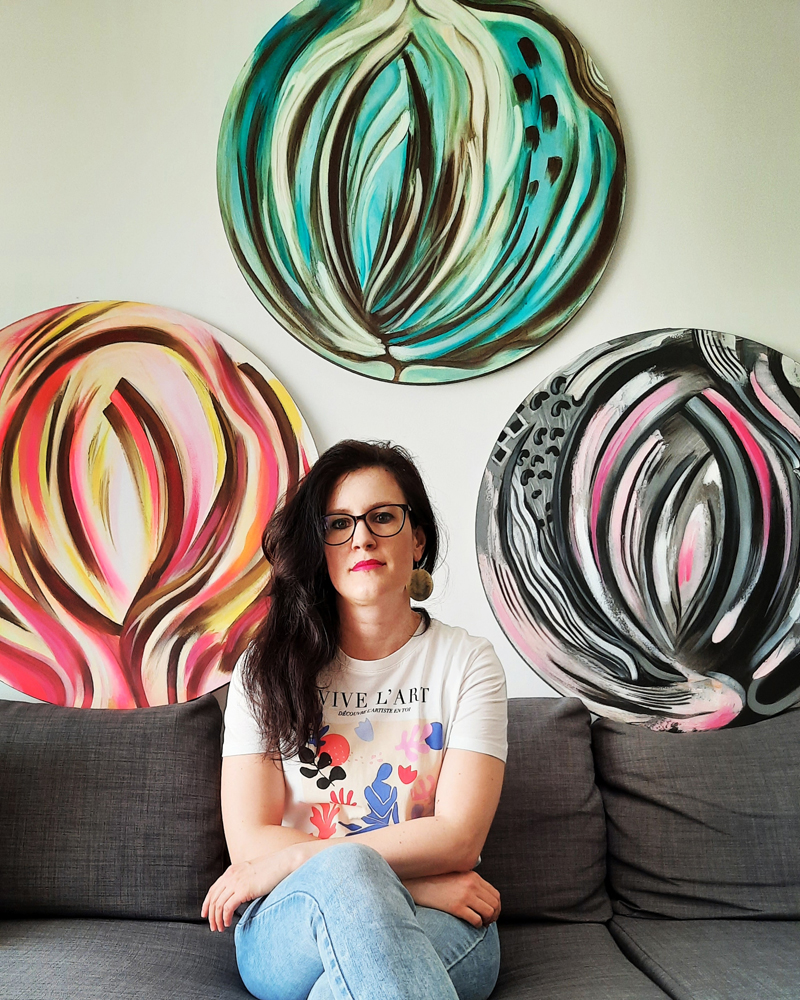 Meine Lieblingsthemen sind die abstrakte Rosen, die von der Natur inspiriert sind, sowie die dekorative Fantasieblumen, die als Symbole der Feminität die Stärke und Eleganz der Frauenpower represäntieren und schließlich die intuitive abstrakte Gemälde, die durch vielfältige Texturen und kräftige Farbkontraste verschiedene Emotionen und Stimmungen hervorrufen.